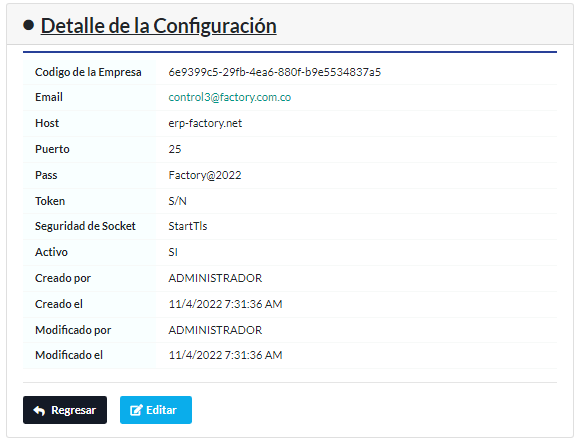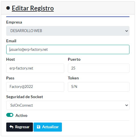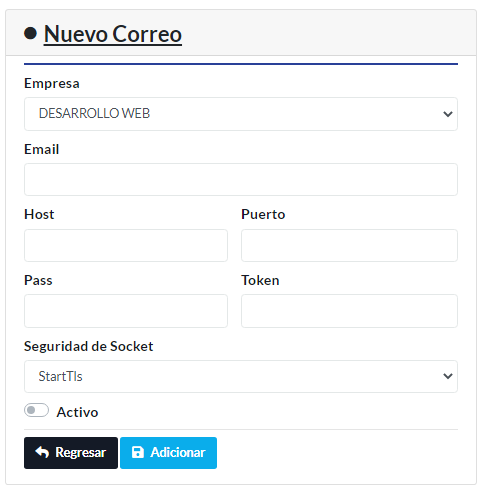 8.Activo: Active el botón si requiere que el correo se encuentre activo.
